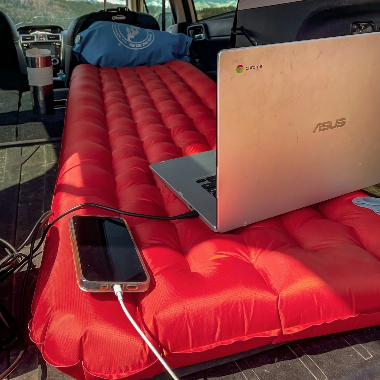 Antimicrobial treatment on the inside helps prevent the build-up of odours and fungi. This inflatable camping mat also comes with a Pad Inflation Sack for ease of set-up that won’t leave you breathless. The inflation sack is made from upcycled materials and the colour will vary.