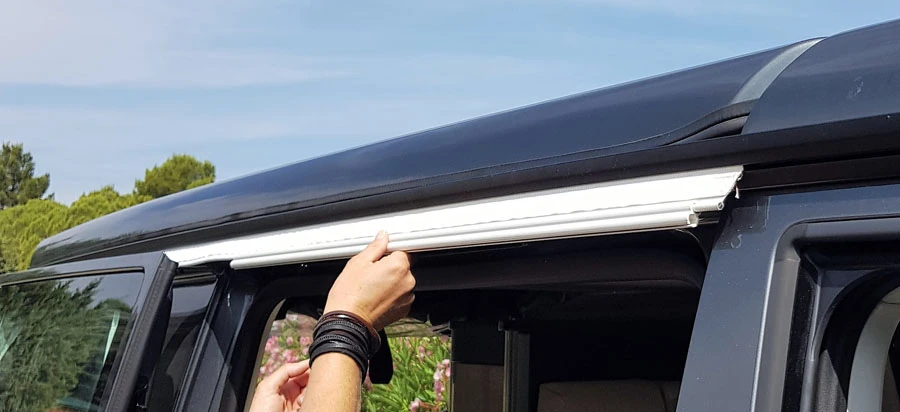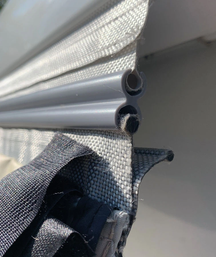The Free-Standing Awning Kit is designed for use on vehicle-mounted rails or on a rail installed in the blind. Simply insert the rail onto your vehicle and slide the plastic rods onto the other beading. Then, slide your awning’s beading over the free side of the sticks. Remove the plastic rods to disconnect the awning.