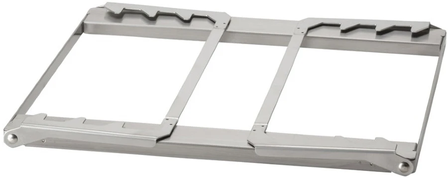 The Grill Bridge features a chrome-coated steel grid construction that fits over your Snow Peak Fireplace allowing you to grill directly over an open fire or set a pot of water or pan on for cooking and heating. Folding legs lets you pack the Grill Bridge away for a travel-friendly design.