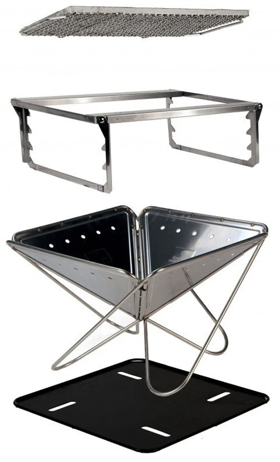 The Pack and Carry Fireplace Kit (also known as the Tabiki Fire & Grill) gives you a portable, free-standing bbq grill and firepit for camping, beach trips, garden use, and more.
